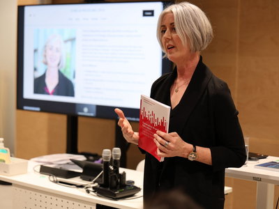 Auch der folgende Vortrag von Prof. Dr. Mairéad Pratschke, international tätige KI-Strategin und Beraterin in den Bereichen Strategie, Governance und Bildung, unterstrich die Notwendigkeit, aktiv mit Künstlicher Intelligenz zu arbeiten. Verbote seien unrealistisch, entscheidend sei vielmehr der zügige Start einer Strategie, ohne auf vermeintlich perfekte Rahmenbedingungen zu warten. Zugleich hob sie hervor, dass insbesondere eine digitale und agile Institution wie die FernUni Schweiz gute Voraussetzungen mitbringe, um sich mit der Zukunft des Lernens auseinanderzusetzen.